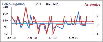 | - El anio empezo jungandose con muchos lotes en la mesa y con el paso del tiempo bajo a niveles similaes a los aņos anteriores, por debajo de los 120 - El promedio de jugadores se mantuvo en 6 |